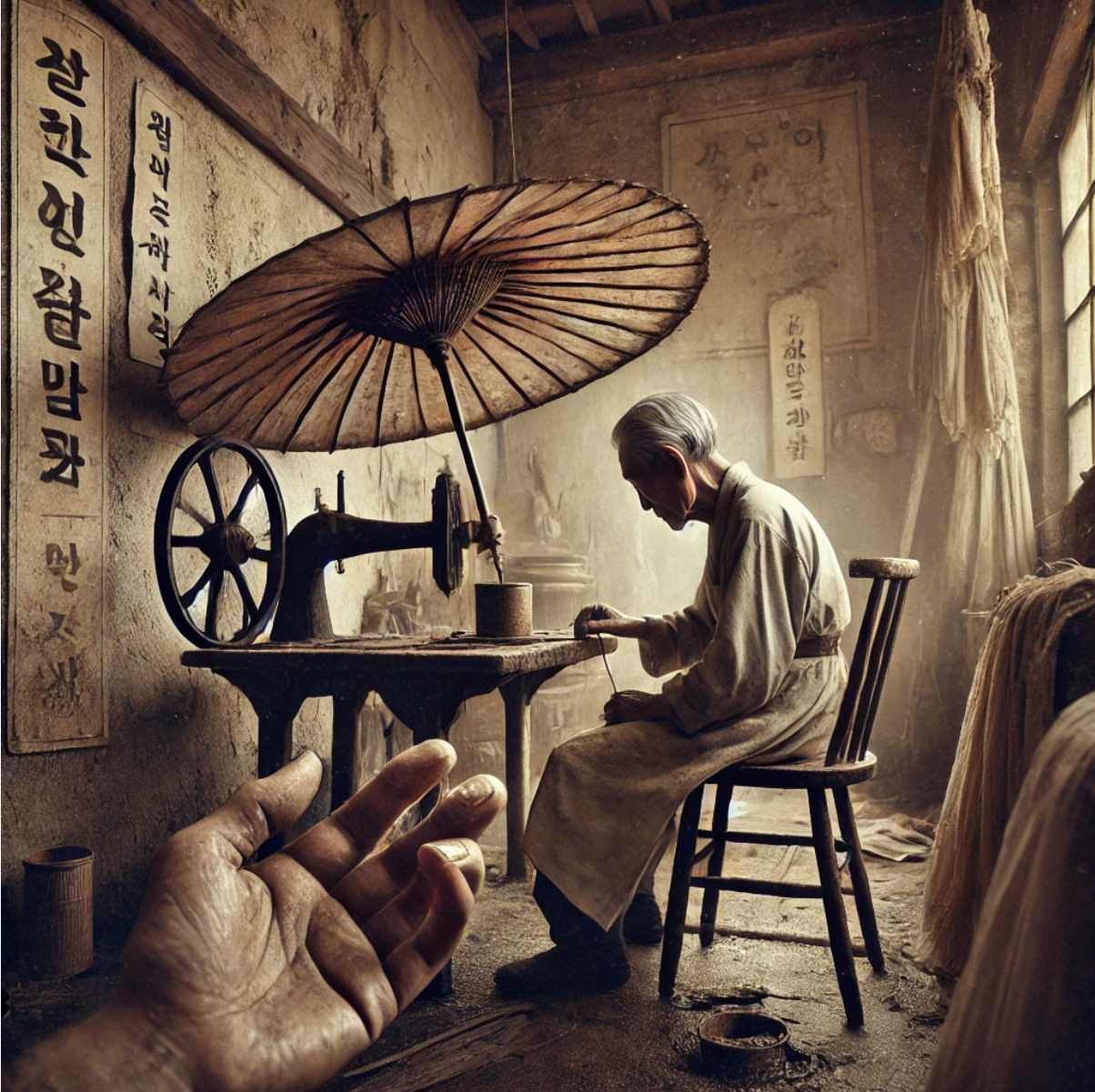 방앗간을 운영하던 장인, 손으로 우산을 수선하던 사람,